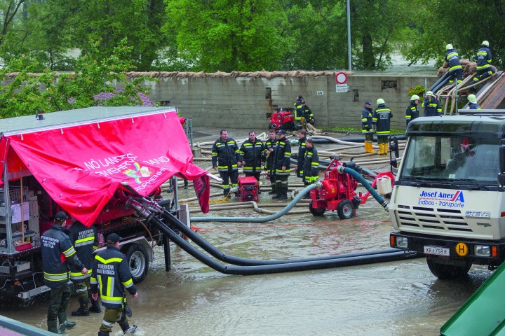 - Beteiligte Kräfte von u.a. Feuerwehr, Rettung, Polizei, Wasserdiensten und Bundesheer
